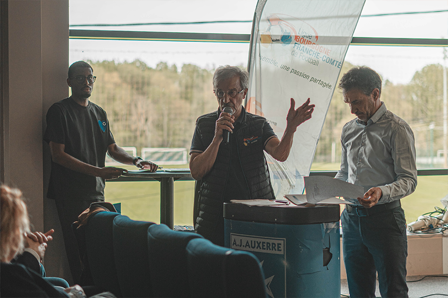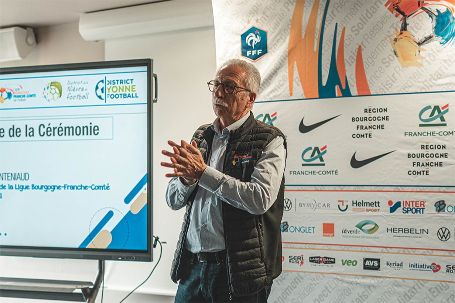 Préparée par la Commission régionale « Valorisation du bénévolat » présidée par Dominique GUYON, la cérémonie a été co-animée par Christophe BIDAL, élu au Conseil d’Administration et responsable du Pôle Développement, et Alain RICHARD, président de la Commission régionale « Événementiel ». La soirée a débuté par l’intervention de Daniel FONTENIAUD, président de la Ligue de Bourgogne-Franche-Comté de Football, soulignant l’importance du bénévolat.